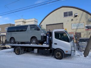 レッカーご依頼頂きました 乗っかってるハイエースは我が社のレンタカーです